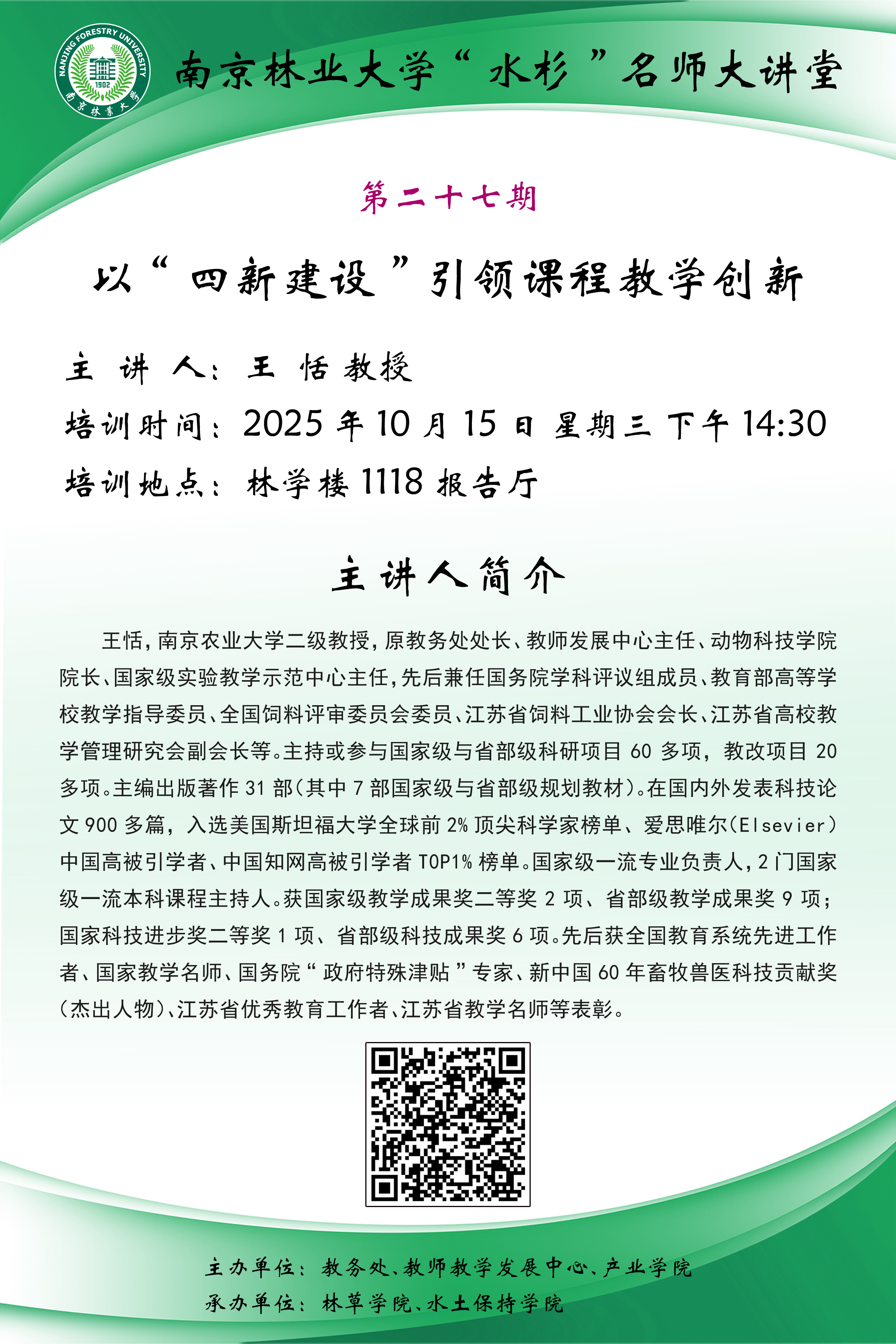 南京林业大学“水杉”名师大讲堂(第二十七期):以“四新建设”引领课程教学创新