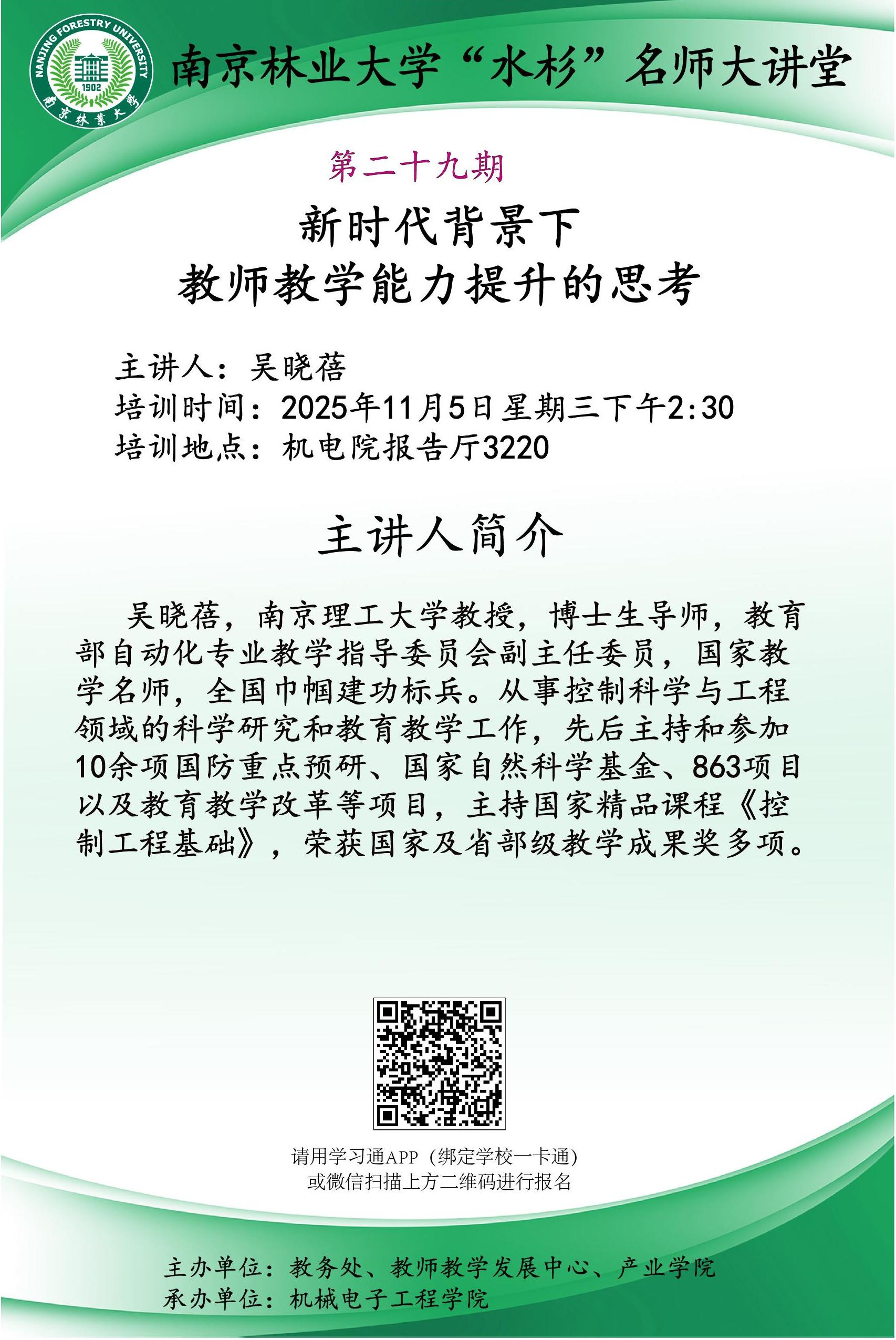 南京林业大学“水杉”名师大讲堂(第二十九期):”新时代背景下教师教学能力提升的思考
