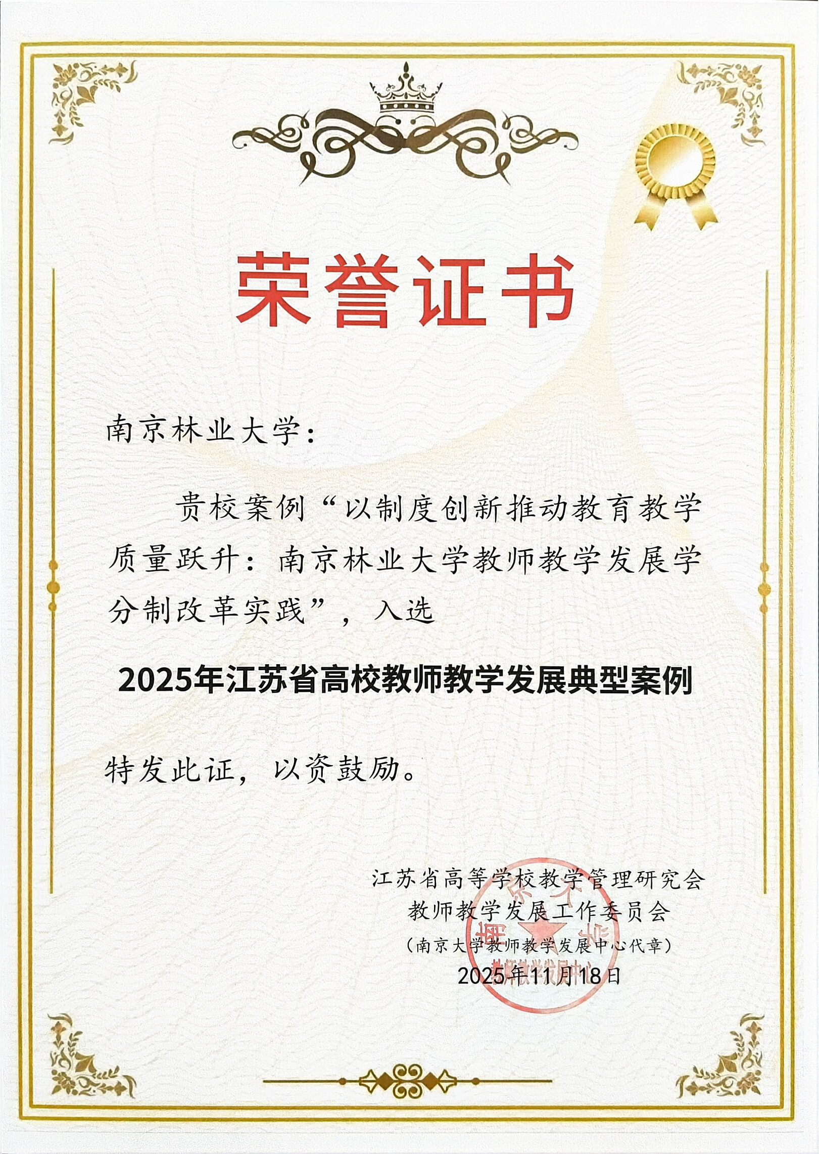近期,江苏省高等学校教学管理研究会、教师教学发展工作委员会开展"江苏省高校教师教学发展典型案例征集"评选活动,我校报送的《以制度创新推动教育教学质量跃升:南京林业大学教师教学发展学分制改革实践》案例成功入选,为全省教师教育教学能力提升贡献南林智慧。此次征集活动全省共12个案例入选。