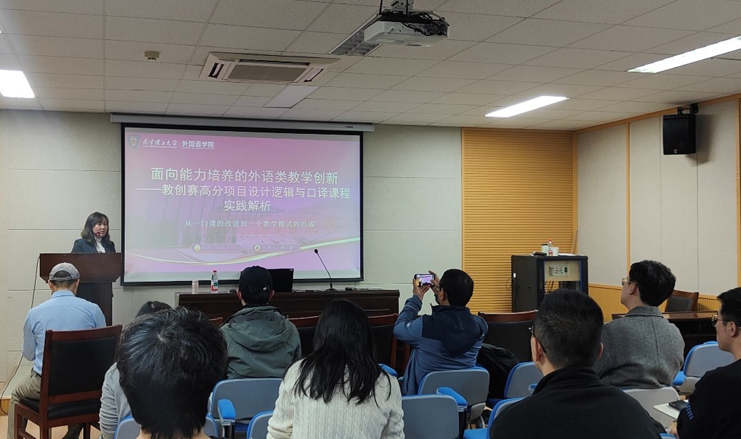 4月1日下午,外国语学院依托 “水杉”名师大讲堂,邀请南京理工大学外国语学院院长、江苏省首届高校教师教学创新大赛一等奖获得者杨蔚教授作题为“面向能力培养的外语类教学创新:教创赛高分项目设计逻辑与口译课程实践解析”的讲座。讲座由外国语学院副院长杨喜刚主持。